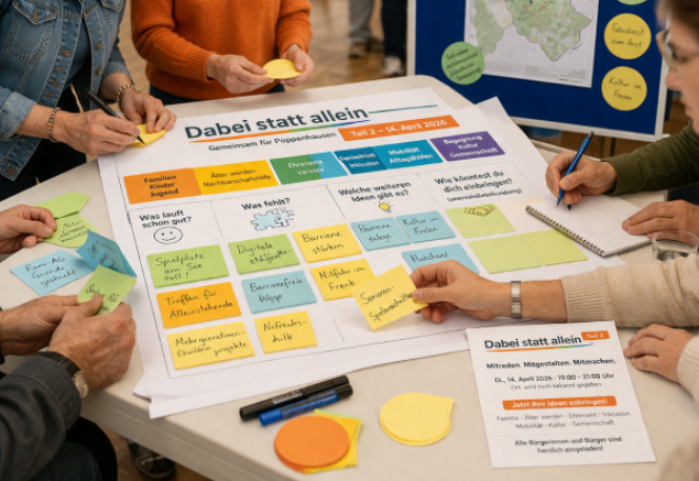 Am Dienstag, 14. April 2026, von 19:00 bis 21:00 Uhr sind alle Bürgerinnen und Bürger herzlich ins Von-Steinrück-Haus eingeladen, aktiv an der Zukunft des sozialen Miteinanders in Poppenhausen mitzuwirken.