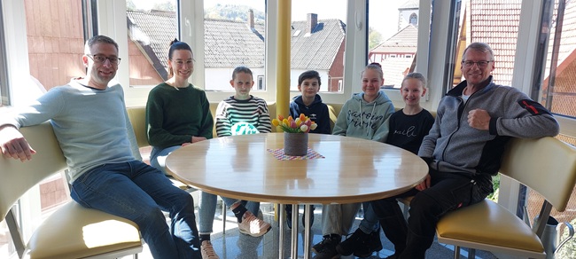 Die vier Jugendlichen mit ihren Betreuer:innen der Gemeinde.