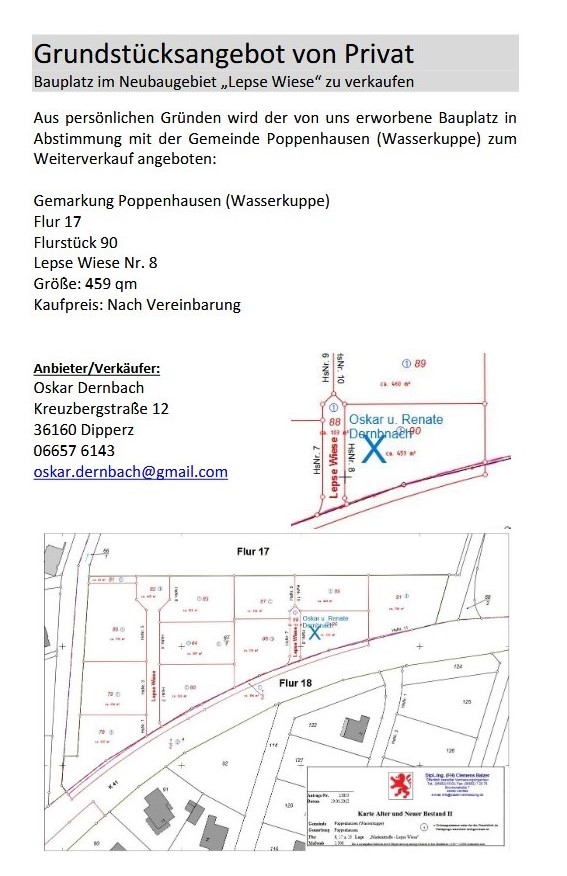 Abstimmung mit der Gemeinde Poppenhausen (Wasserkuppe) zum Weiterverkauf angeboten.