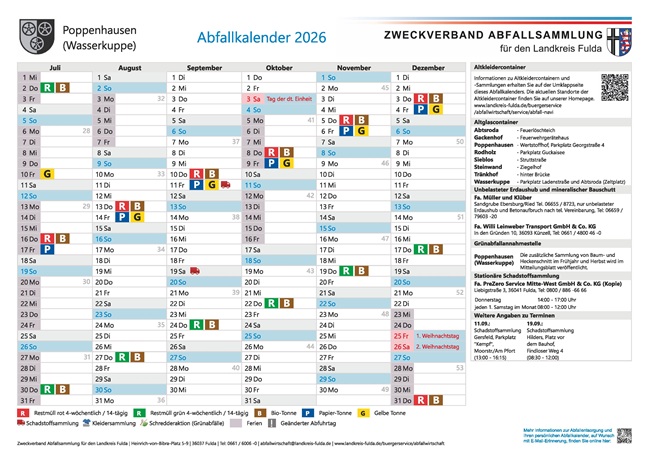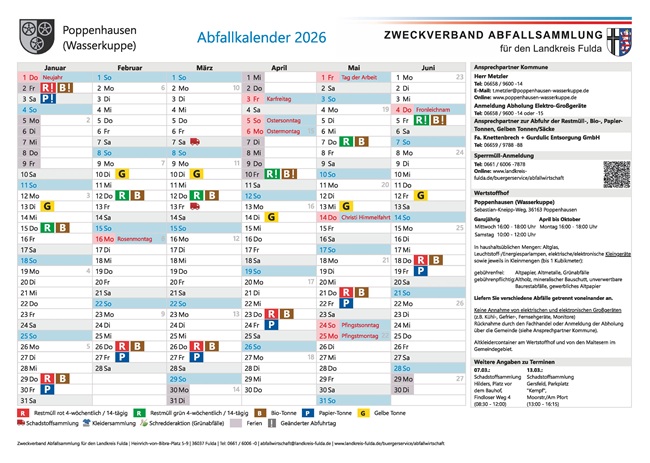 Klicken Sie hier oder auf die Bilder für den Abfallkalender 2026 der Gemeinde Poppenhausen (Wasserkuppe).