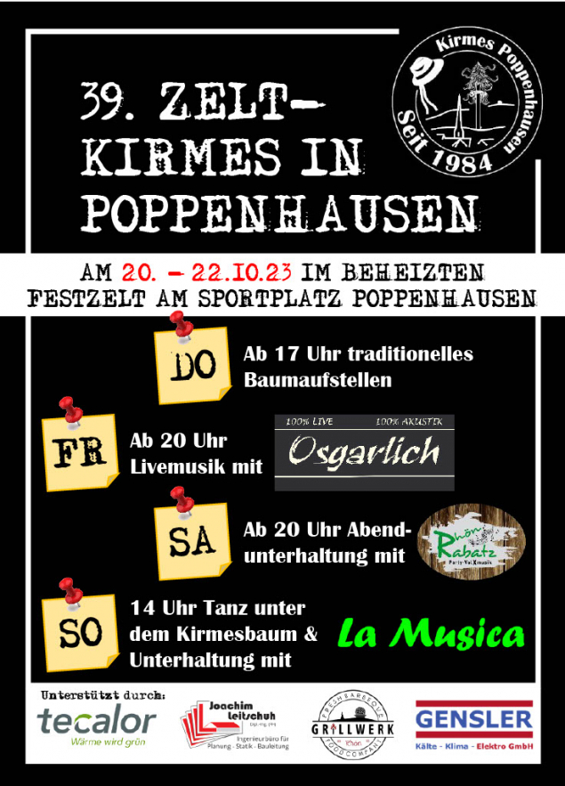 Sonntag ab 14.00 Uhr Tanz unter dem Kirmesbaum, im Anschluss unterhält sie "La Musica"